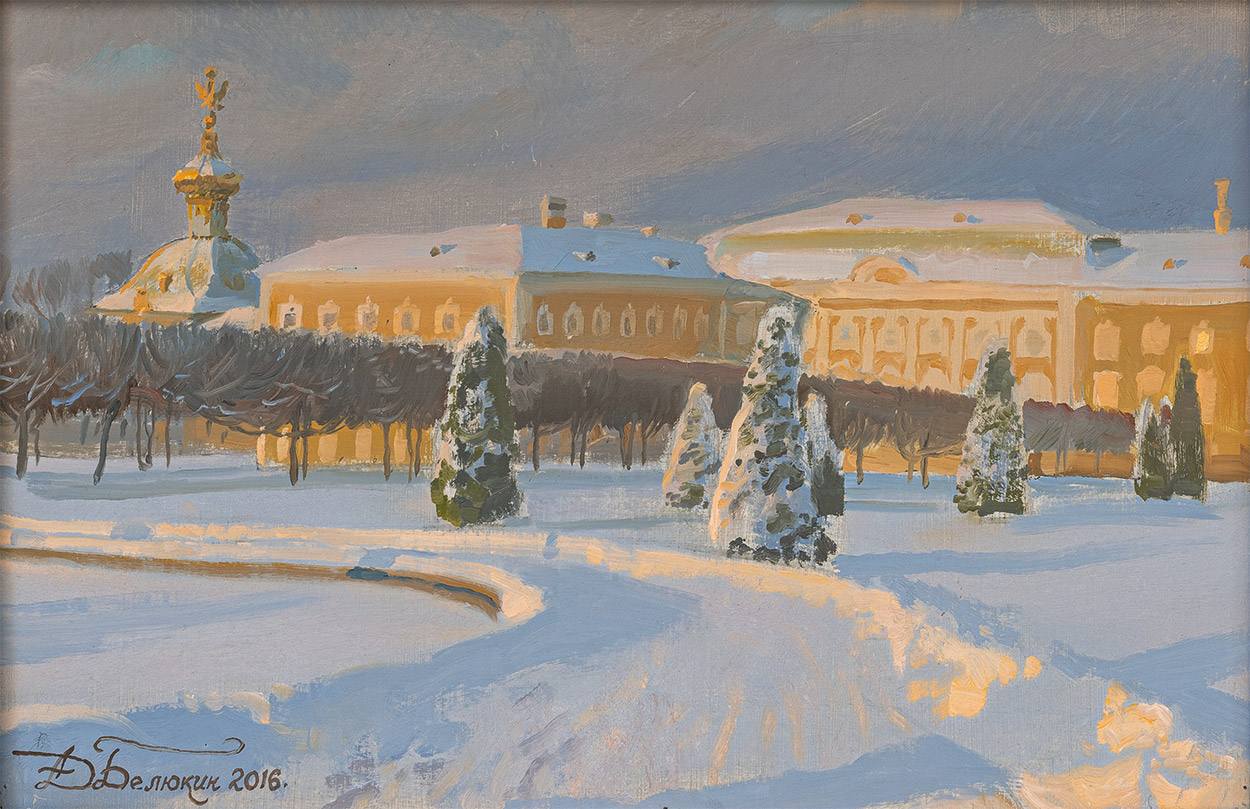 В верхнем парке Петродворца морозной зимой